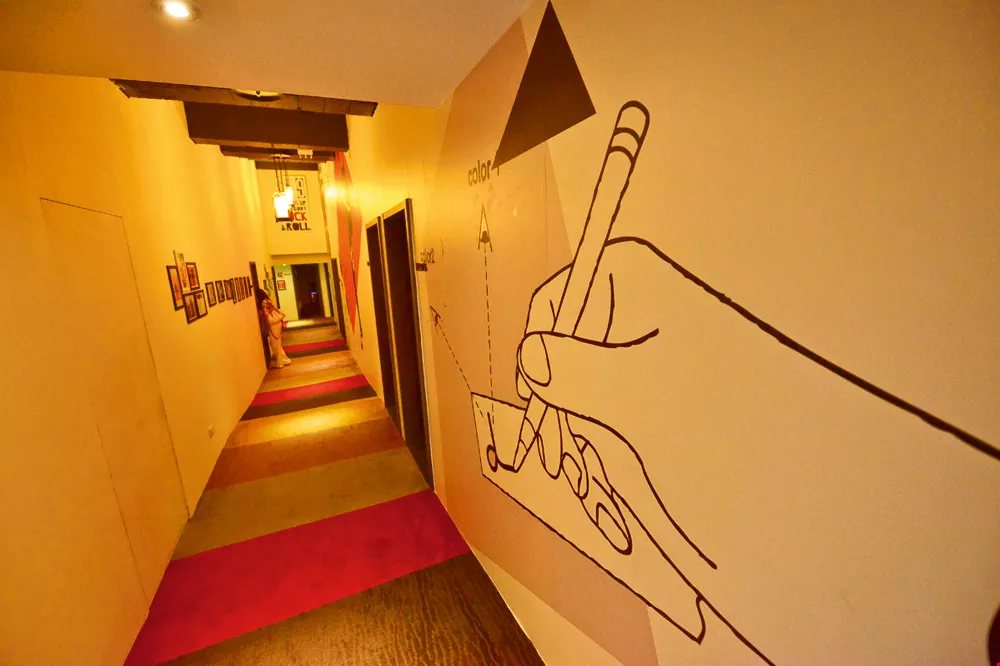 After securing financial assistance from friends and family, Tung set about planning how he was going to use his funds. He decided to eschew anything not directly related to accommodation, to limit the outlay on each room to no more than NT$500,000, and to budget a healthy portion of his funds to getting cutting-edge artists to help design the interiors. The resulting hotel has a lobby and corridors reminiscent of London’s Soho, with one-of-a-kind wooden furniture pieces that were all custom made for the hotel from carefully selected materials.