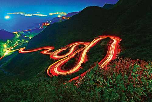 The winding county road leading from Jinguashi toward the coast to Shuinandong was once an industrial road. Today locals call it the "Romantic Highway."