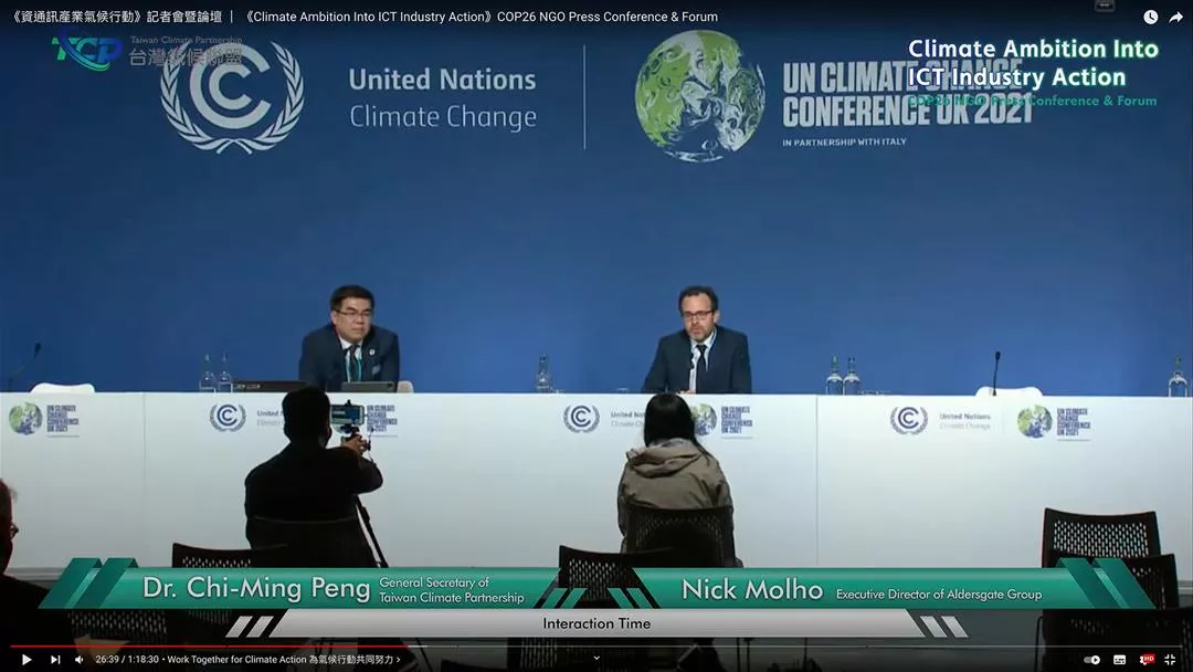 At the 2021 United Nations Climate Change Conference (COP26), a press conference and forum titled “Climate Ambition into ICT Industry Action” attracted particular attention. The event was hosted by Dr. Peng Chi-ming, general secretary of the Taiwan Climate Partnership (TCP), and Nick Molho, executive director of the UK-based Aldersgate Group, with the former sharing the story of the TCP’s founding by eight of Taiwan’s most important ICT firms. Moreover, through the online forum, the founding members’ achievements and goals relating to net-zero carbon emissions were shared with the world, demonstrating the Taiwanese ICT industry’s commitment to net zero.