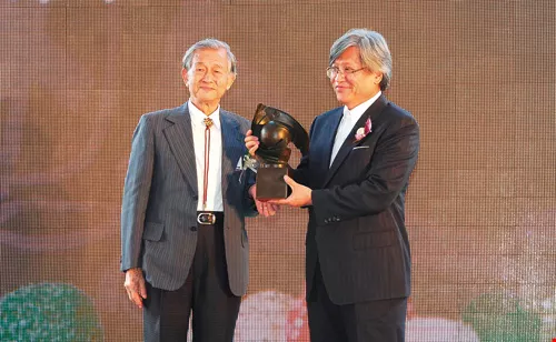 During the awards ceremony, Lee (right) asked Chen Chien-wu, founder of the poetry journal Li, to accept the award on his behalf.