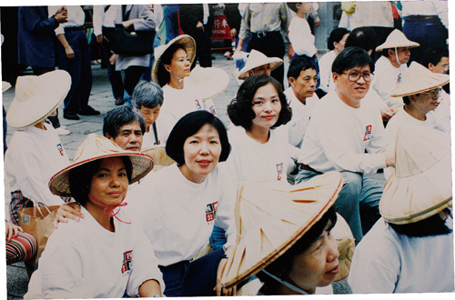 Lee (middle row, far right), a long-time social activist, and his wife (second from right) participate in an anti-nuclear rally.