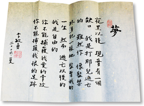 Sitting in a Taipei office building, Lee thumbs through a collection of Brodsky's poetry and quotes a passage: "Sometimes, poets can answer questions that scientists and philosophers cannot." He stresses that poets don't simply sculpt words, but rescue them. "Rescuing words" implies engaging with the workaday world to safeguard its beauty and significance. In an era without liberty, the poet cannot yield to pressure or temptation, but must do his utmost to write the truth, to bear witness to the times.