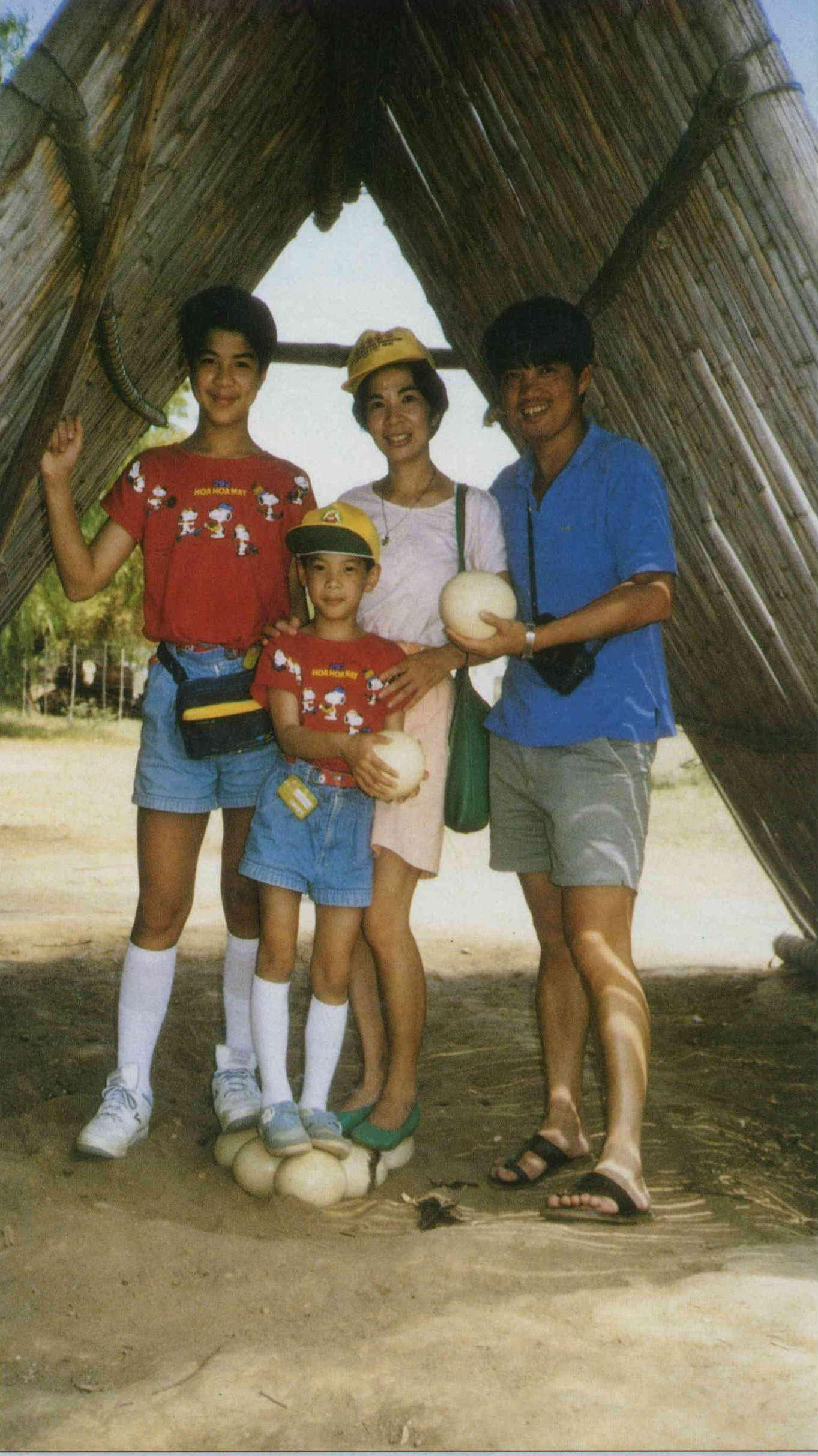 (Left) Hsieh Hsin-i took his family of four to Oudtshoorn, South Africa, to visit one of the African game parks the children have so long wanted to see. Everyone beams with joy at holding an enormous ostrich egg.(photo courtesy of Hsieh Hsin-i)