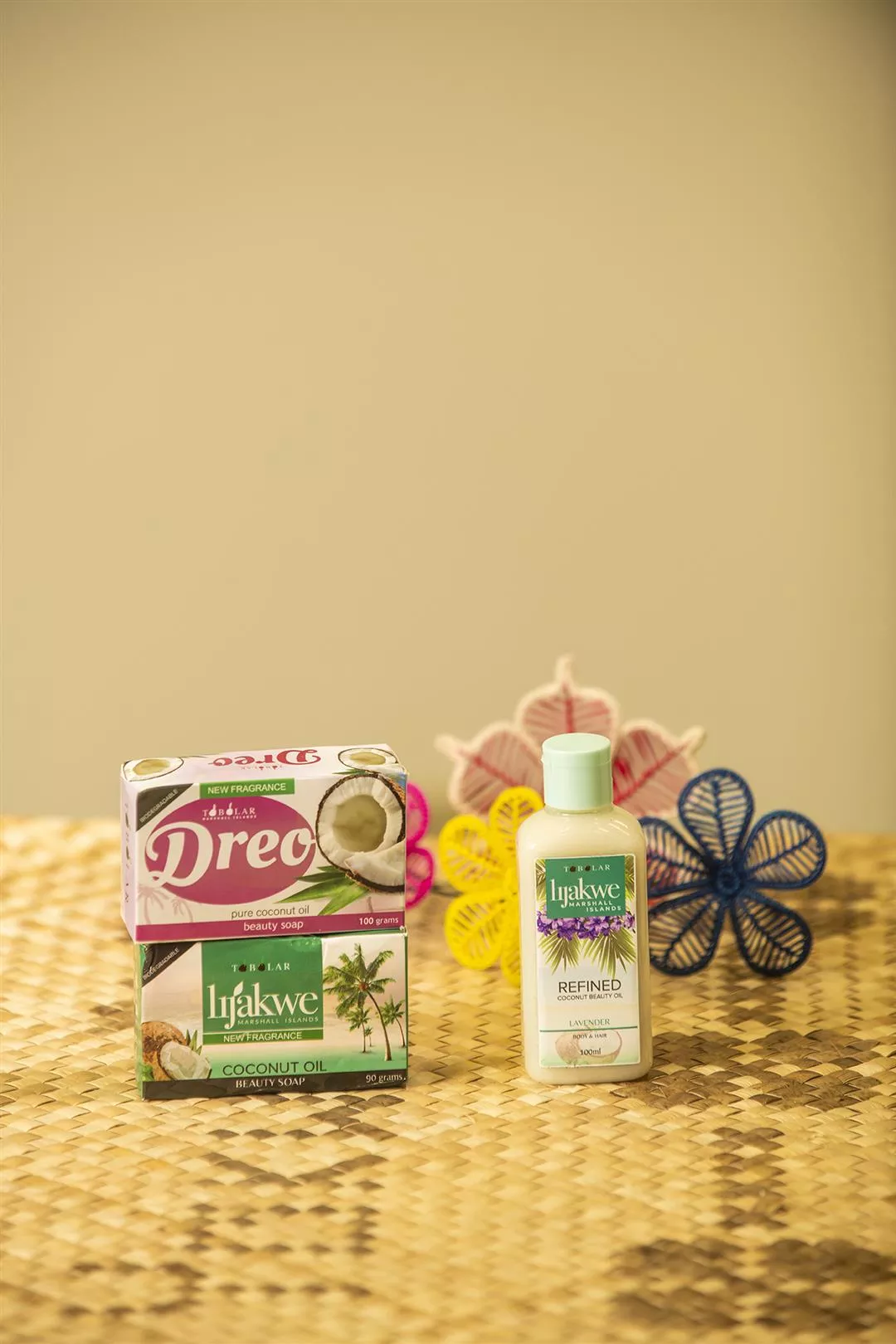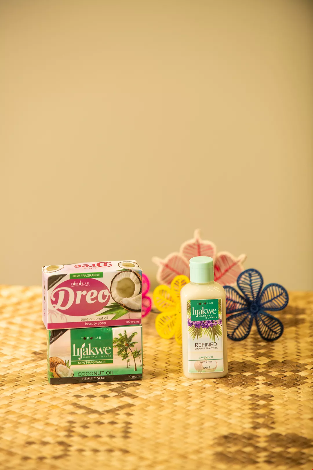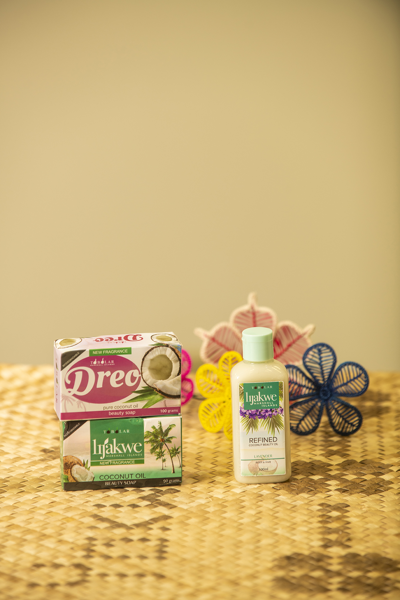 The RMI produces large quantities of coconuts, with coconut oil being processed into beauty products like soap and hair conditioner.