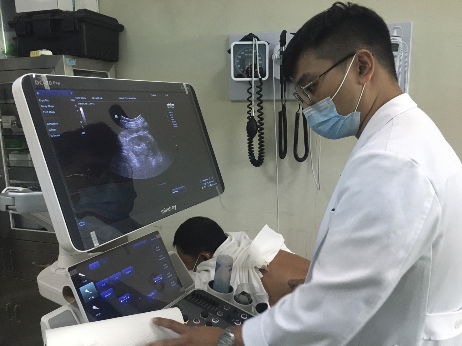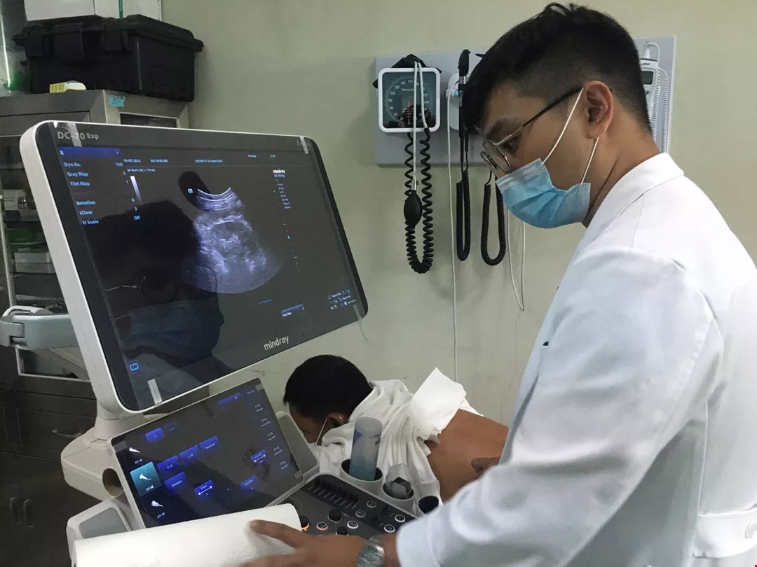 Taiwan’s Shuang Ho Hospital periodically sends doctors to the Marshall Islands for one-month tours treating local residents. The photo shows urologist Dong Shao-wei seeing Marshallese patients.(courtesy of Shuang Ho Hospital)