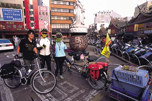 In Hsinchu, Yang ran across a couple who were also making an around-the-island tour by bicycle. They pulled a trailer behind them. Rather than baggage, the cart carried their pet dog. Since the biking craze swept Taiwan, around-the-island riders have become a familiar sight all over.