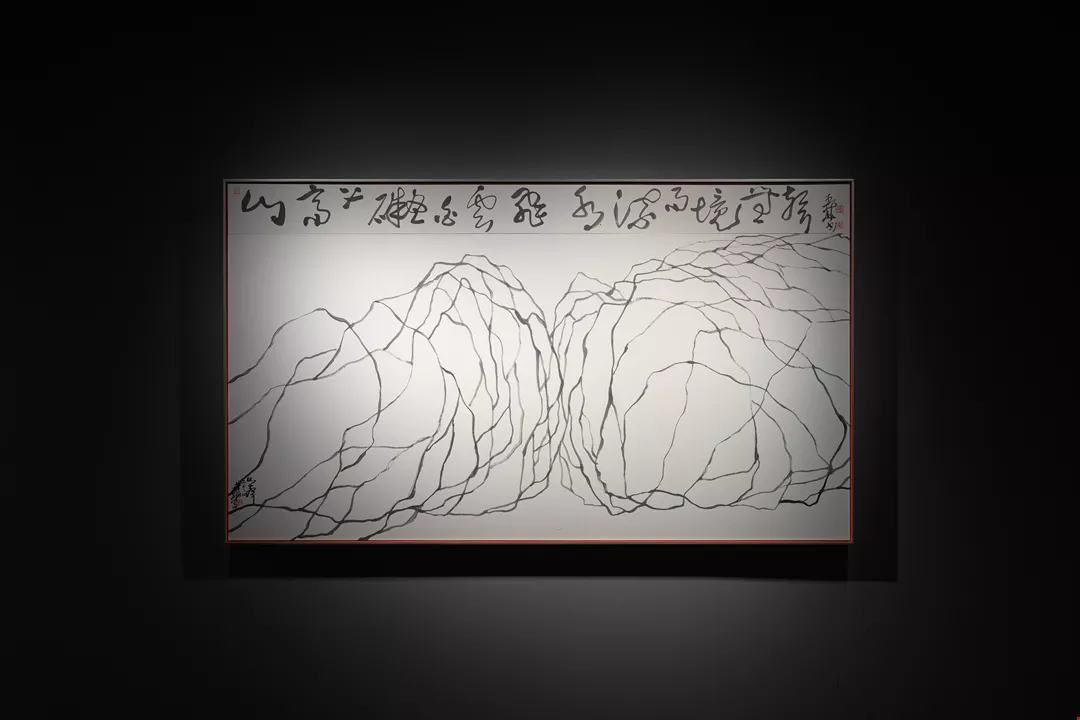 Chu’s international experience inspired him to cast a boldly revisionary light on his own creative practice. He began to combine black ink with acrylics for brighter colors, endowing his calligraphic lines with more vitality. The resulting style brings modern aesthetics to bear upon traditional East Asian sensibilities, embodying Chu’s belief that “calligraphy and painting have a common root.”
