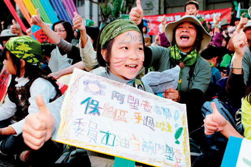 Yet in January 2011, as a consequence of the efforts and appeals of environmentalists, the Pingtung County Government, citing a clause in the Cultural Heritage Preservation Act that reads “If any site of natural landscape value is discovered in the course of a construction project or other development project, ... the discovery shall be reported to the competent authority,” forestalled construction by temporarily designating Alangyi as a “natural landscape protected area” for two six-month renewable terms.