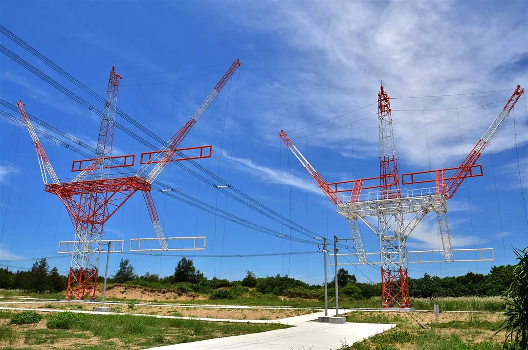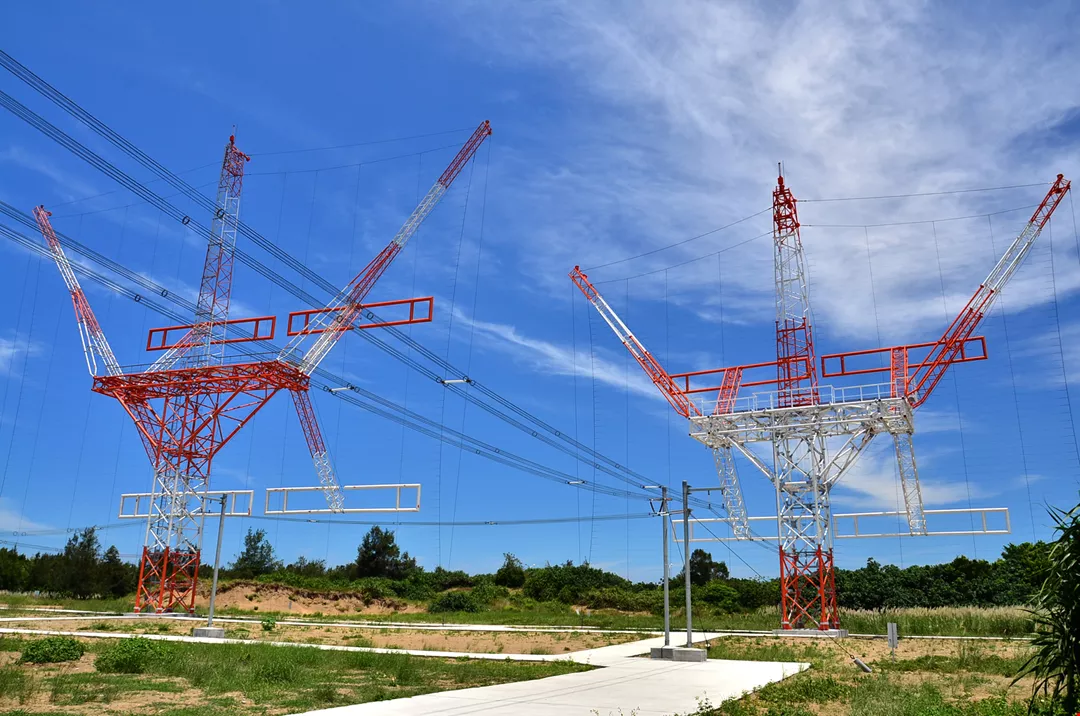 300-kilowatt shortwave transmitters are 30 times more powerful than ordinary FM radio transmitters. This photo shows RTI’s antennas in Tamsui, New Taipei City.