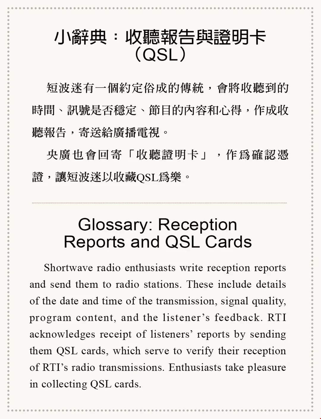 RTI sends Taiwanese-themed QSL cards to listeners. Shortwave enthusiasts enjoy collecting these cards. (photo by Jimmy Lin)