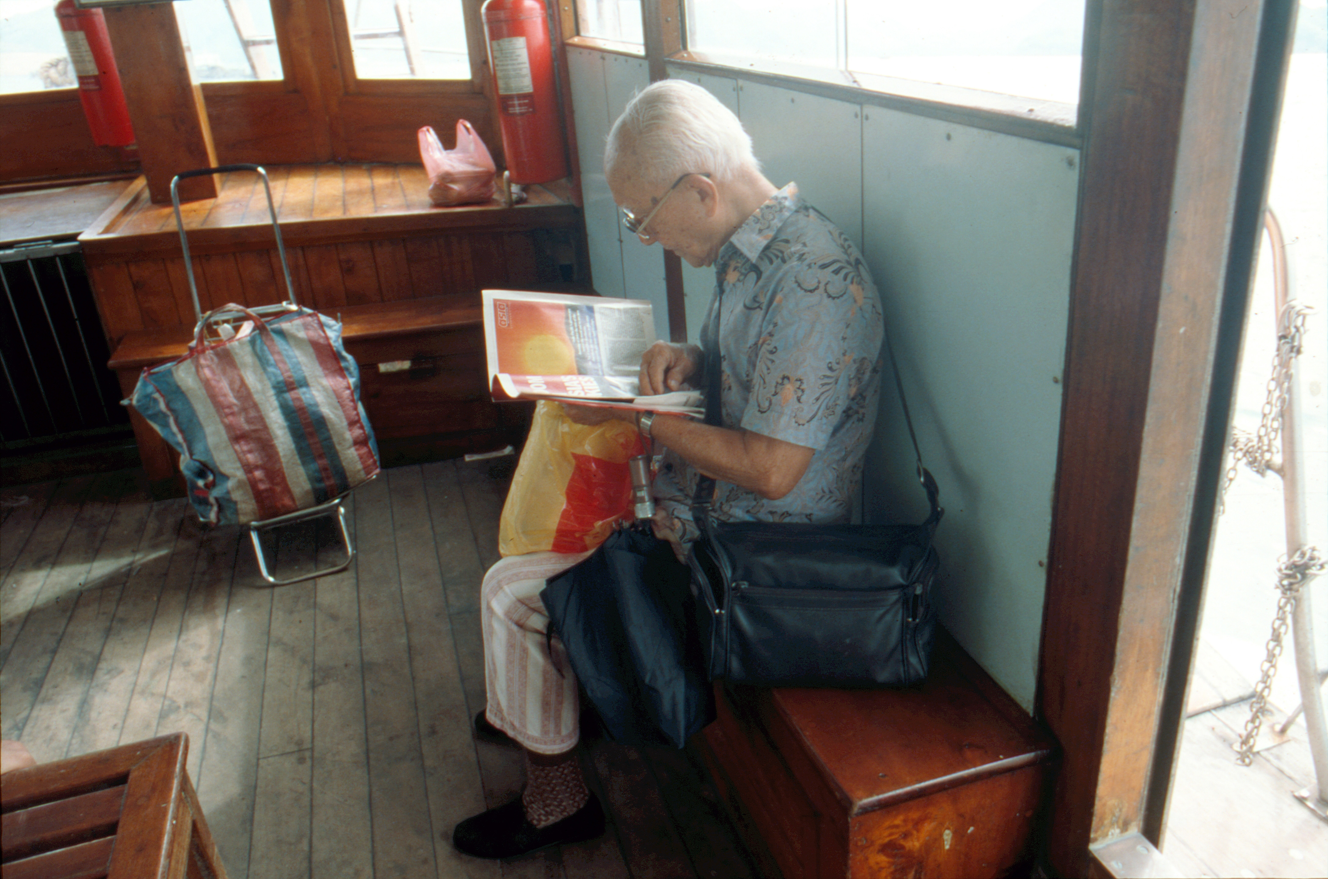 On the Hong Kong-to-Rennie's Mill ferry, an elderly gentleman peruses an English magazine; maybe he's a retired old general!