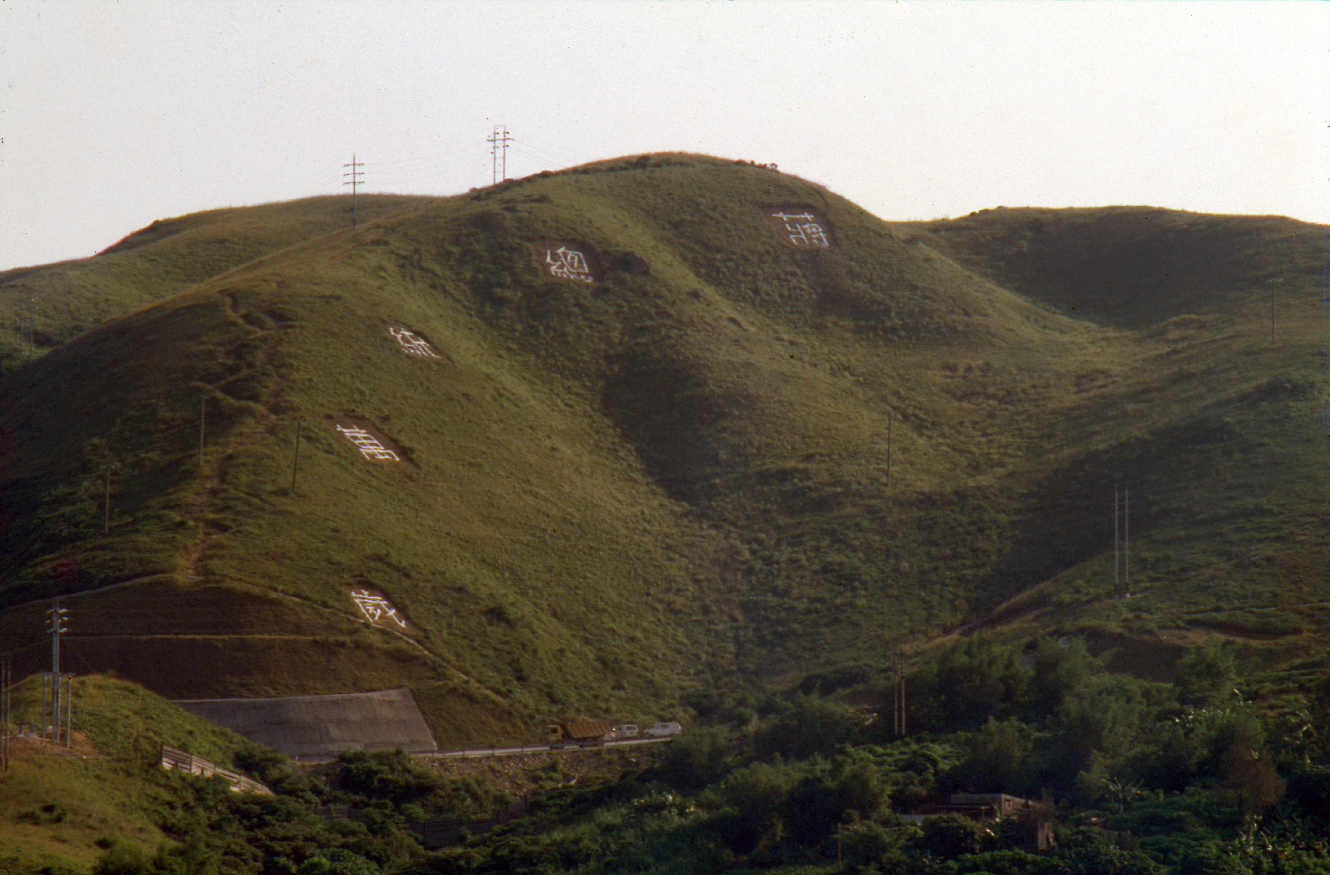 Residents put a lot of effort into getting these characters--"Long Live President Chiang!"--to the highest spot in Rennie's Mill.