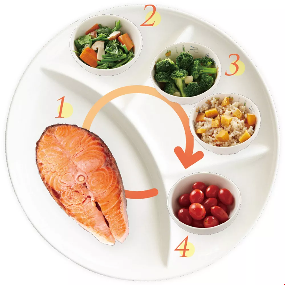 At each meal, protein is consumed first, then vegetables and starches, and finally fruit. This is the metabolic-balance weight-loss method that Hung Tai-shiung advocates so strongly.
