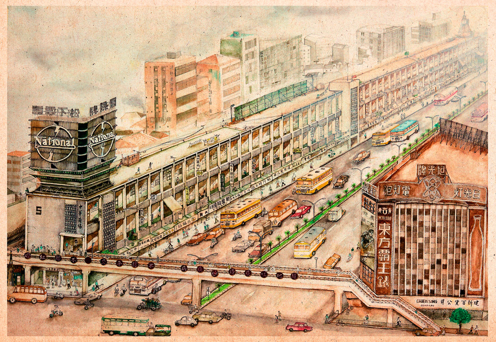 After combing through nearly 200 photos, Wu ended up drawing on his own faulty memory to sketch Taipei’s Zhonghua Market, which was demolished in 1992.