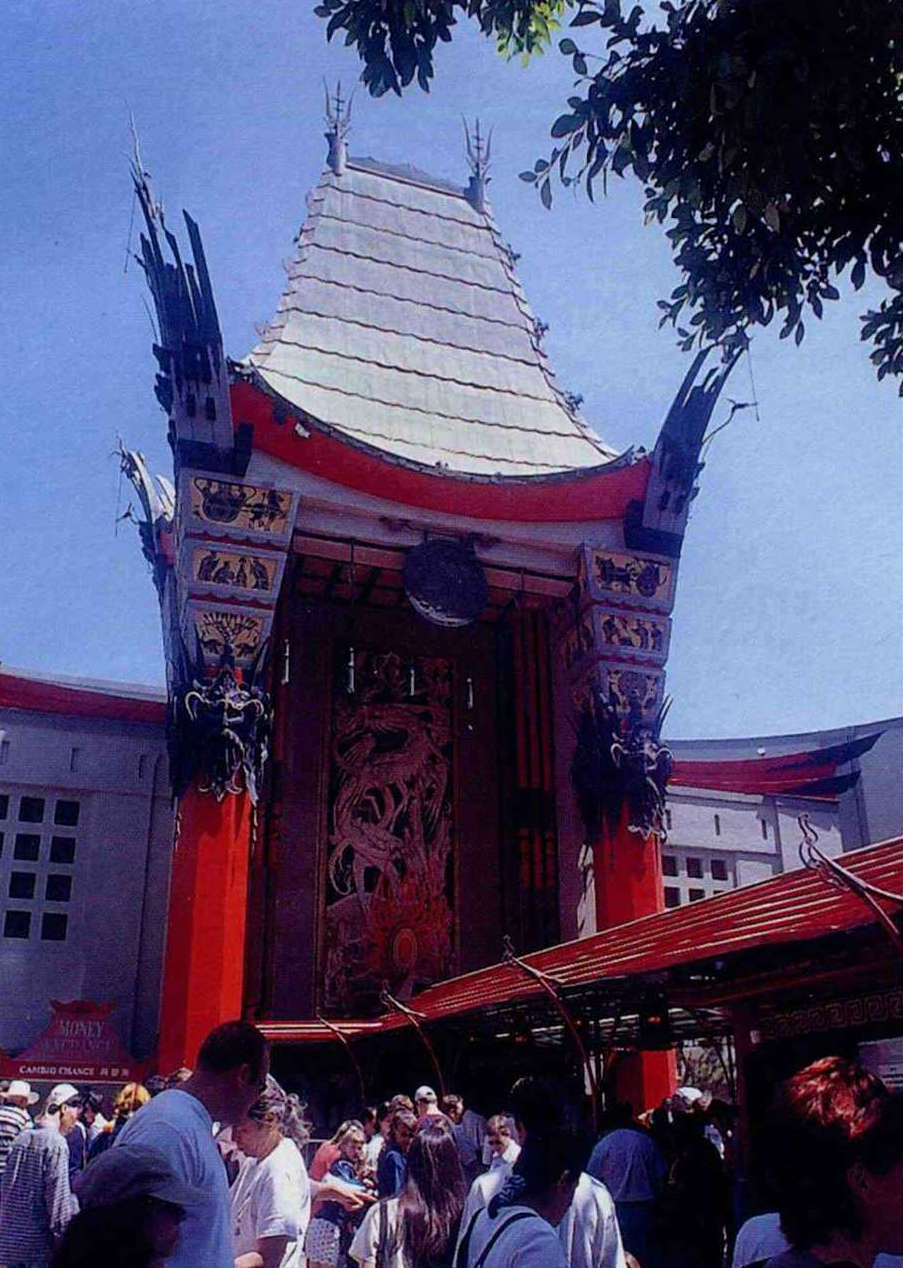 Though styled like an oriental temple, the theater in fact has nothing to do with China. In the 1920s, cinema owners felt that with the American public still recovering from the trauma of the First World War, fantastically decorated movie-houses built to resemble palaces would help to cheer people up. Hence the construction of an "Egyptian" theater, and a "Chinese" theater, the latter featuring a large gong in the courtyard, hand-woven rugs in the interior, and intricately carved dragons on its ceiling.