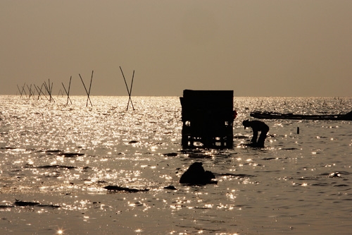 Wu Zhucheng, who runs a clam nursery in Fangyuan Township, says that the venus clams don't grow nearly so fast anymore since the Formosa Plastics sixth naphtha cracker was built. They used to reach harvesting size in a year, but now it takes a year and 10 months, which is why local fishermen oppose plans for the Kuokuang Petrochemical complex.