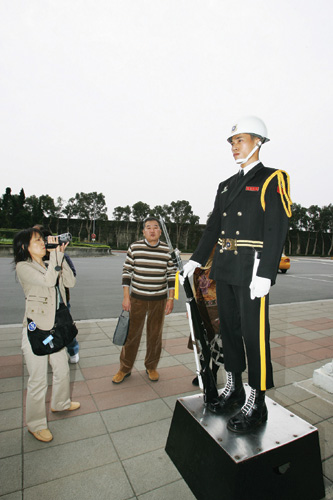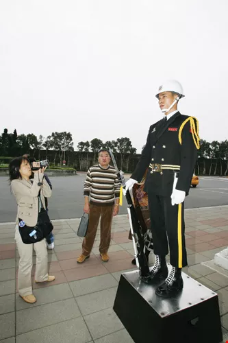 They hit the main sights on the second day. After breakfast, Chen takes the Japanese tour groups to the Martyrs' Shrine to see the 9:00 changing of the guard. The solemnity of the ceremony contrasts with the animated Japanese conversations, making an interesting scene. Since the end of World War II, the Japanese have been constitutionally barred from keeping a regular army and only permitted to have a Self-Defense Force. That makes the changing of the guard an exceptional event for them, and they never fail to snap a lot of pictures.