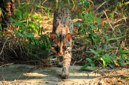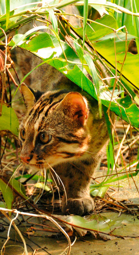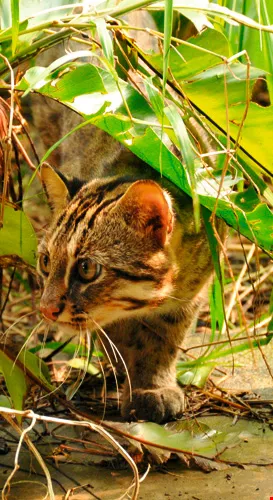 Leopard cats live in low-elevation mountainous areas, where broadleaf and manmade forests, cultivated fields, and human habitations provide them with a bountiful supply of the rodents, birds, and hares on which they prey.