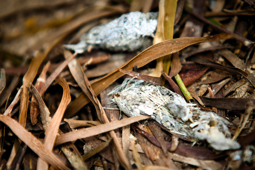 The leopard cat’s relative secretiveness has made it difficult to study. Fortunately, it doesn’t bury its scat, giving scientists a place to start their research. (courtesy of the Endemic Species Research Institute) The lower photo shows indigestible bits of rodent fur and bones found in a leopard cat’s scat.