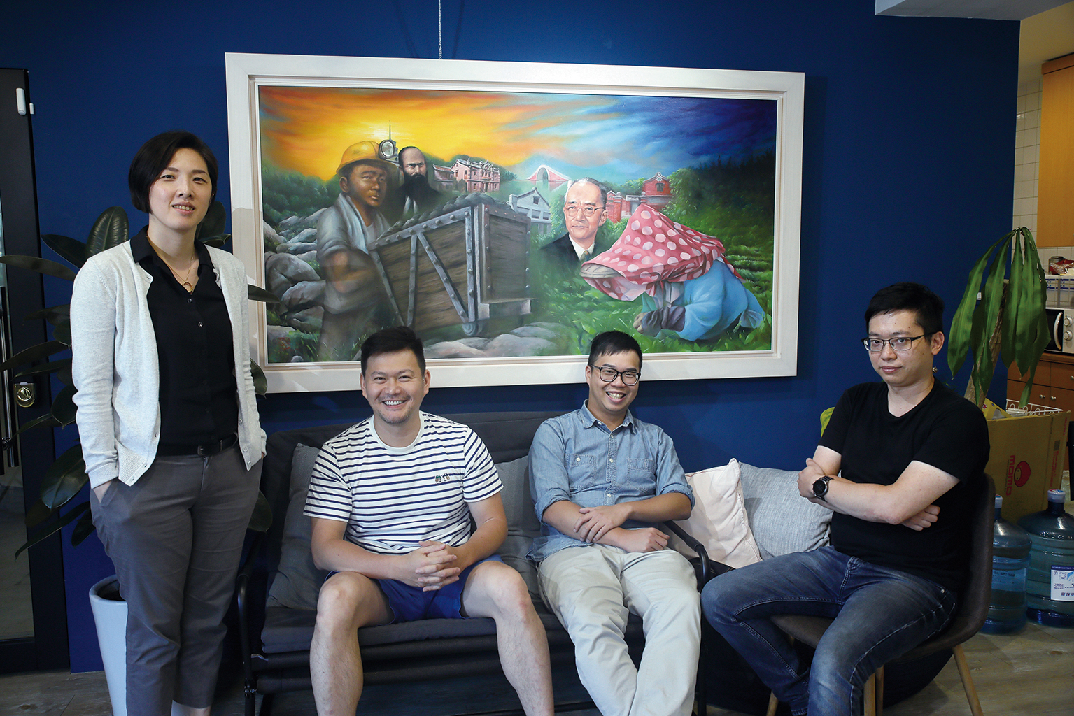 The TNTF team asks volunteers to visit the National Archives to help digitize Taiwan-related historical information. From left, the team includes Cai Sih-ting, Hsin Hsiao, Hou Kuang-yuan and Darren Yang. (photo by Jimmy Lin)