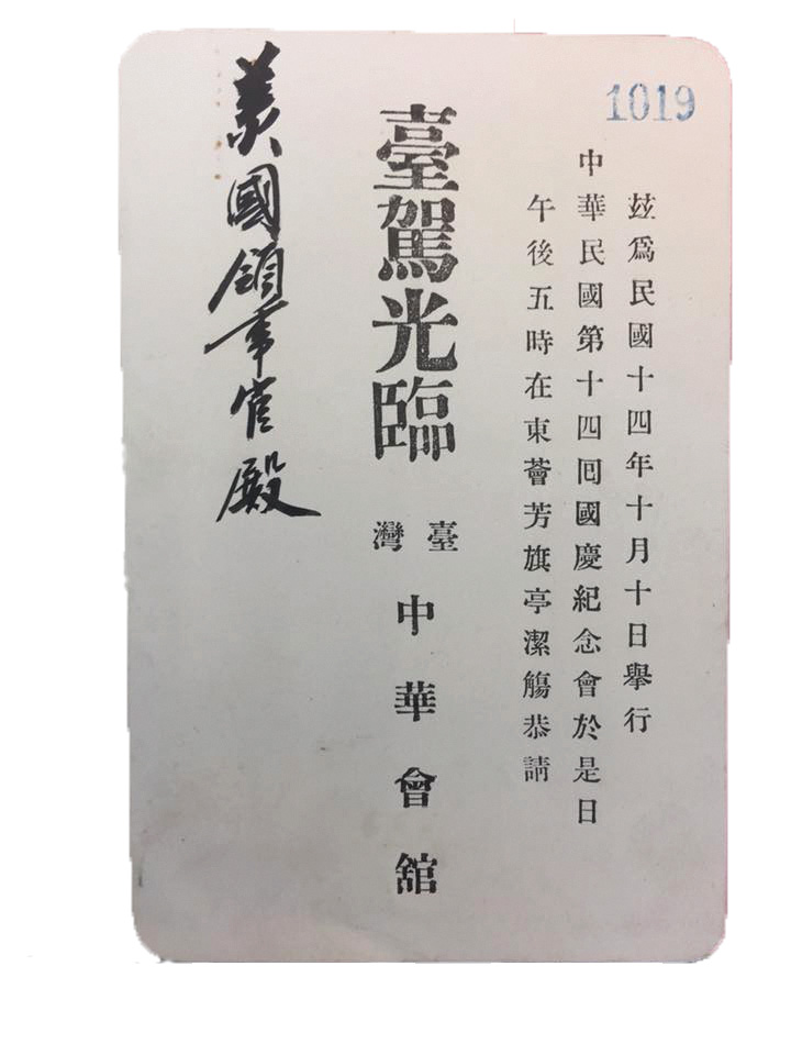 Foundation CEO Darren Yang explains, “US law makes this kind of information public after 30 years. All of the documents we copy are originals.” That means that volunteers are handling papers that played a direct role in history. They’re like portals through time, opening cracks that offer glimpses of actual events. For example, in 1925, when Taiwan was still a Japanese colony, the US consulate in Taipei received a card from the ROC consulate-general inviting its staff to attend the celebrations of the 14th anniversary of the ROC’s founding. Preserved intact, the invitation card is a physical embodiment of the complexity of Taiwan’s past.