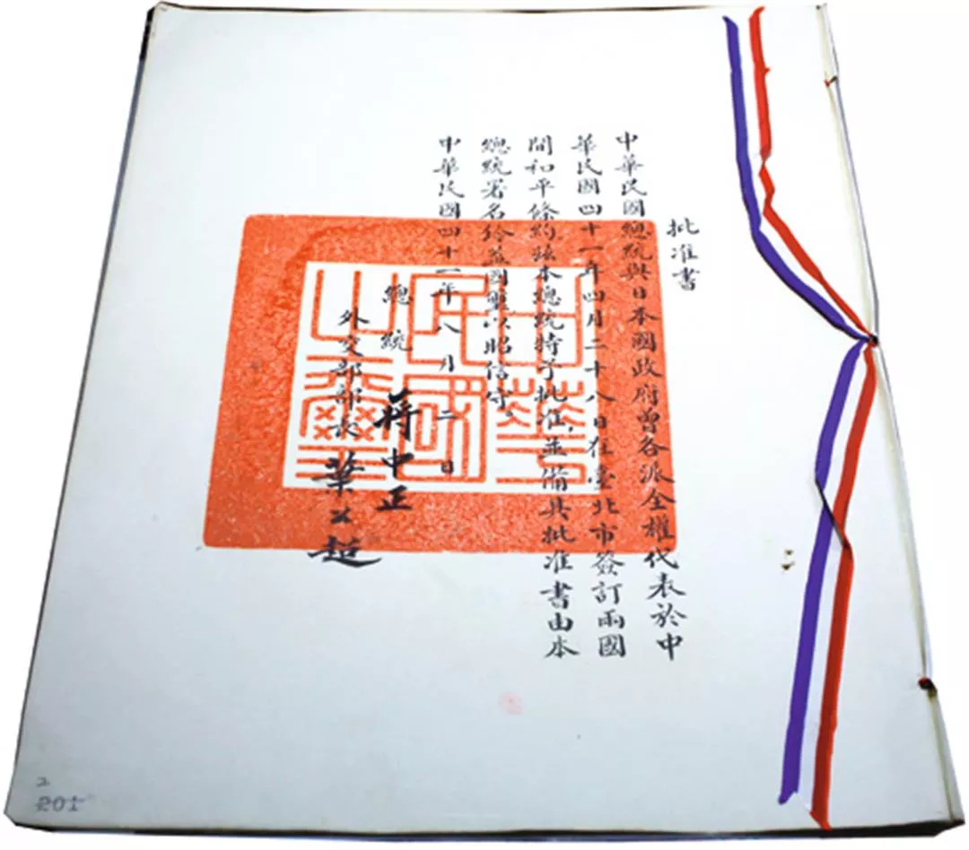When the ROC-Japan Peace Treaty was signed and took effect, it formally ended the state of war between the two nations. From a legal standpoint, it also confirmed that Taiwan and its appurtenant islands were being returned to the Republic of China.