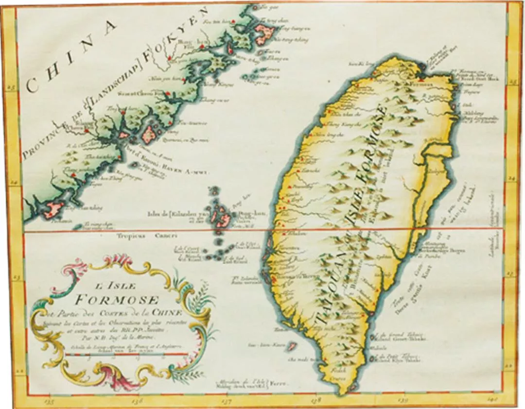 Ancient maps tell the story of Taiwan. On this 18th-century Western one, details of the rarely visited east coast are scant, but in the west of the island many place names are clearly marked.