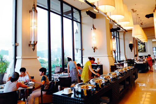 Located atop a Sanya skyscraper, Zaomiao Café offers fantastic views that attract crowds of young people in the evening.