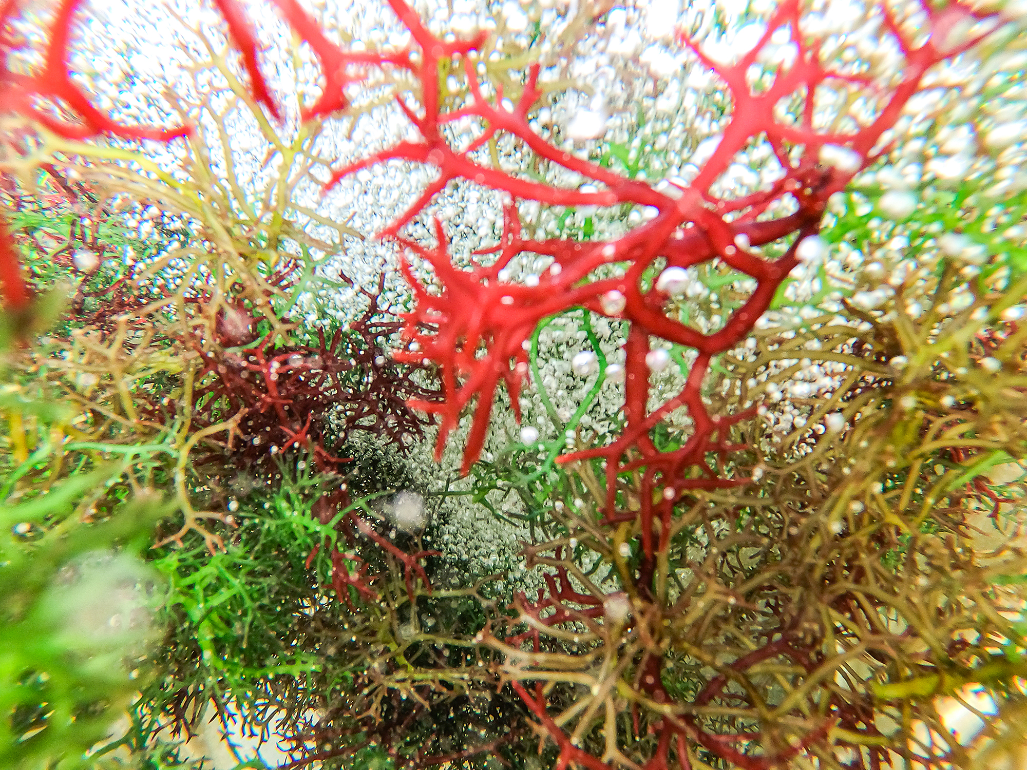 Algae play a leading role, albeit a low-profile one, in regulating the climate. The photo shows sea sawdust (Trichodesium spp., a genus of filamentous cyanobacteria) gathered from the surface water of the Kuroshio Current; its cells are only six micrometers wide. (courtesy of Ho Tung-yuan)