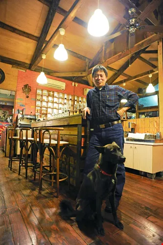 The refurbishing of old houses puts a fresh new face on the city. David Pao (right), the owner of Drop Coffee House, located in a renovated Japanese-era structure on Xinsheng South Road, loves to observe the crowds strolling by outside. Looking into the shop also feels very much like watching live theater.