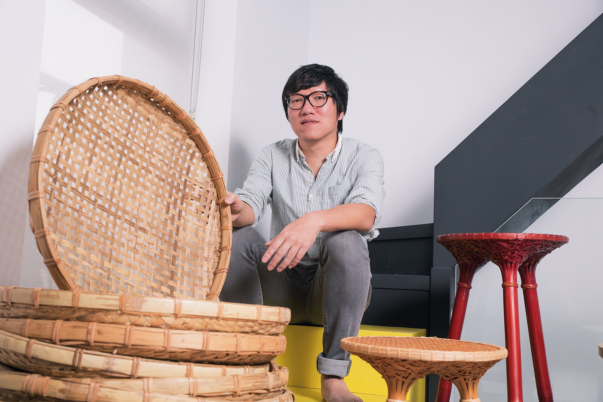 Taiwan designer Kevin Yu-jui Chou has won major international design awards (including iF and Red Dot) for his bamboo creations. (photo by Lin Min-hsuan)