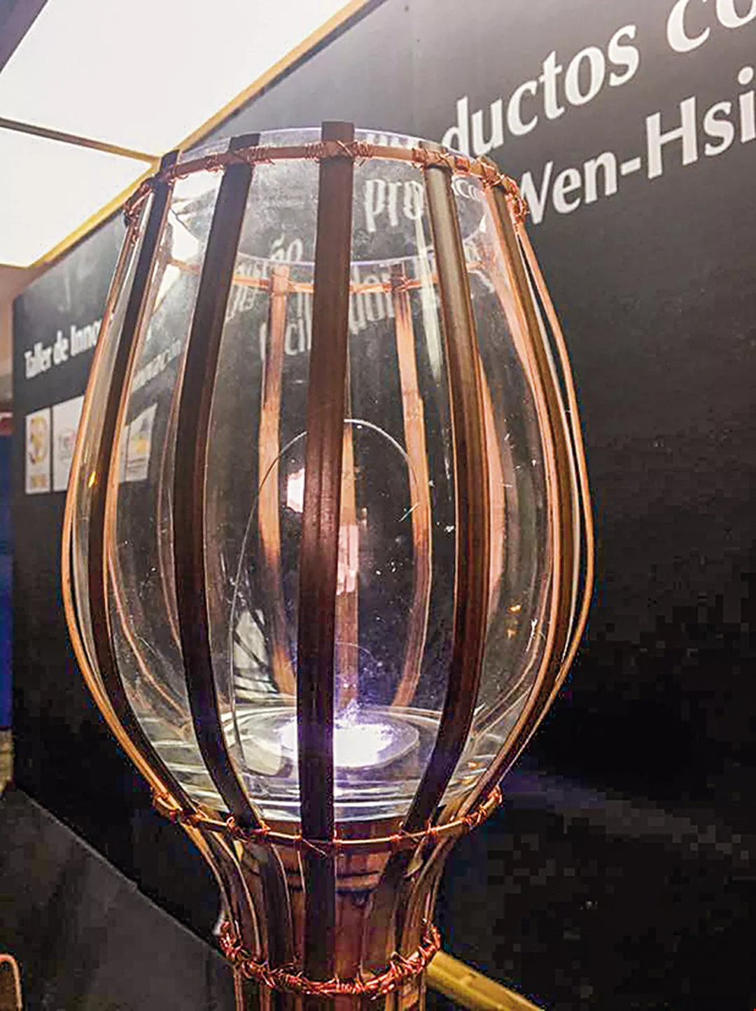 A lamp produced by students from a bamboo-industry workshop shows real ingenuity in their design.