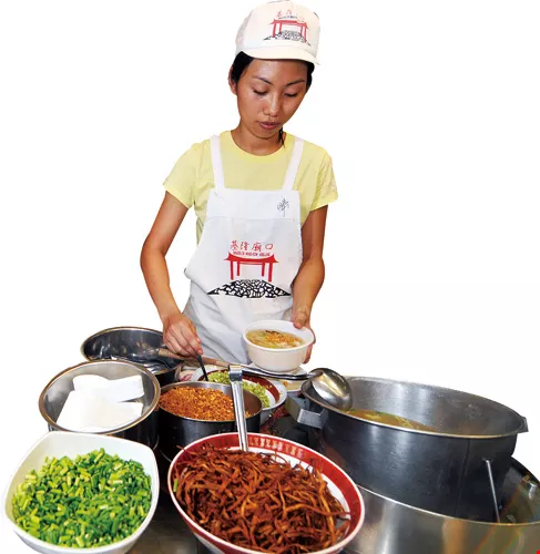In his younger days, Xie Wen-xian, currently chief representative of the food and beverage vendors at Miaokou Night Market, worked as a ship hand for 10 years before returning in 1985 to take over the stall his father left to him. This stall, selling braised pork rice, rib soup and side dishes, was run by his older brother by day. Later, when the older brother fell ill, Xie's younger brother took over. Now Xie himself and his wife handle the 10 p.m. to 7 a.m. shift.
