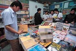 With Beijing's "first channel" of book distribution unable to cope with the needs of a free market, the private sector's "second channel" has taken off in leaps and bounds. This picture shows a "second channel" wholesale book market in Beijing.