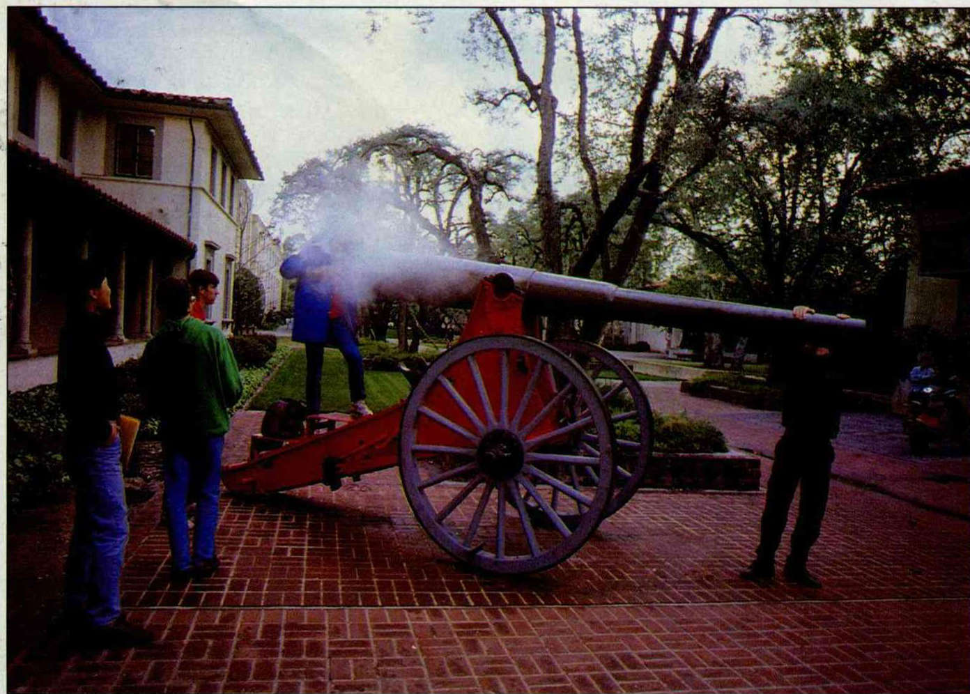 After the last class of term, the students fire a cannon with gunpowder they made themselves to celebrate the arrival of vacation.