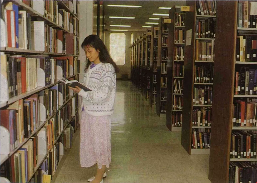 (Left) Buried in their books all day long, the undergraduates emerge at noon for a break.
