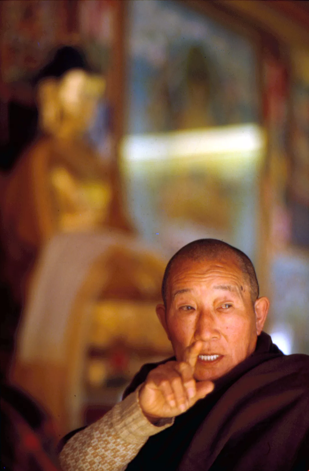 This 76-year-old of Tsinghai lama casts a wistful glance towards his old homeland.