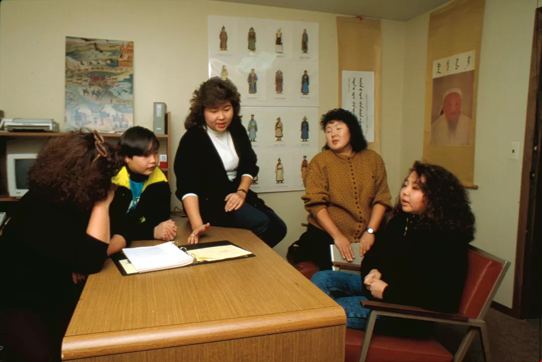 Education was not well developed among the nomadic peoples, so only a small minority were ever able to read and write Mongolian. "Our parents were illiterate, so how could we learn?" Meanwhile as their homeland in the Soviet Union, the "Kalmuck Autonomous Republic," now lay behind the Iron Curtain, teaching materials became inaccessible, and eventually all Mongolian classes had to be dropped.