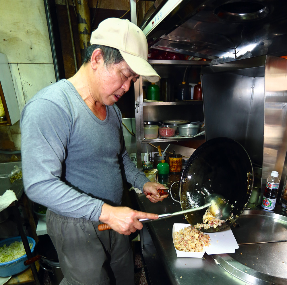 “This is my kitchen,” quips the taxi driver, who learned about Huang’s fried rice from a fare 20 years ago. He tried it out, and has been coming back ever since, eating a bowl of noodles every day for lunch and a bowl of white rice with stir-fried vegetables for dinner. He is now good friends with Huang, and even stops by each lunar new year’s to share a meal with the proprietor’s family.