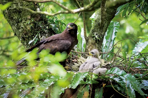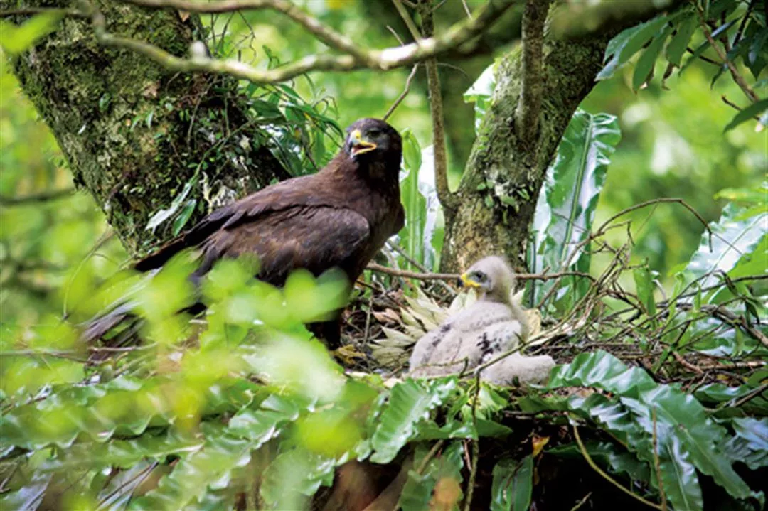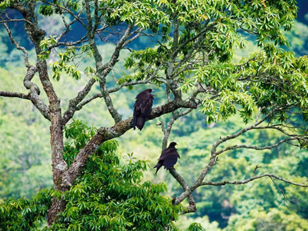 The black eagle builds its nest in epiphytic ferns (such as birds-nest ferns or rock ginger ferns) perched high up in broadleaf trees. This special nest-building method added a twist to Lin’s search for the nests.