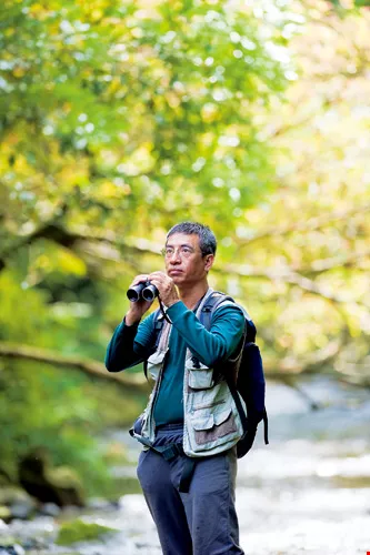 It’s early May. The Fu-Shan Botanical Garden is teeming with life: butterflies flit about, the nonstop calling of birds and buzzing of insects fill the air, and the trailside grasslands bear traces that wild boars have been digging there. From there, Lin Wenhorn enters the Hapen Nature Reserve, where Taiwan shoveljaw carp flash their ruddy fins in the crystal-clear streams to attract mates. After an hour of trekking through mountains and streams, Lin arrives at a spot in an open meadow to observe raptors.