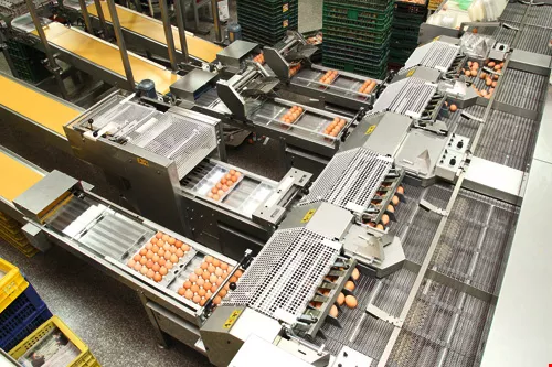 The fully automatic egg washing and sorting equipment standardizes selection, disinfection, crack detection, grading and packaging, processing 36,000 eggs an hour.
