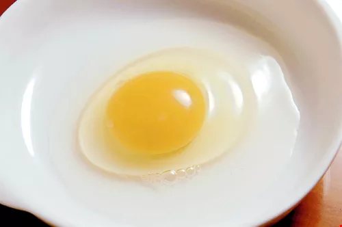 Eggs bearing ID marks (upper picture) is a new trend in the egg industry. Good eggs (lower picture) have robust yolks, with distinct layers of yolk, thin albumen, and thick albumen.