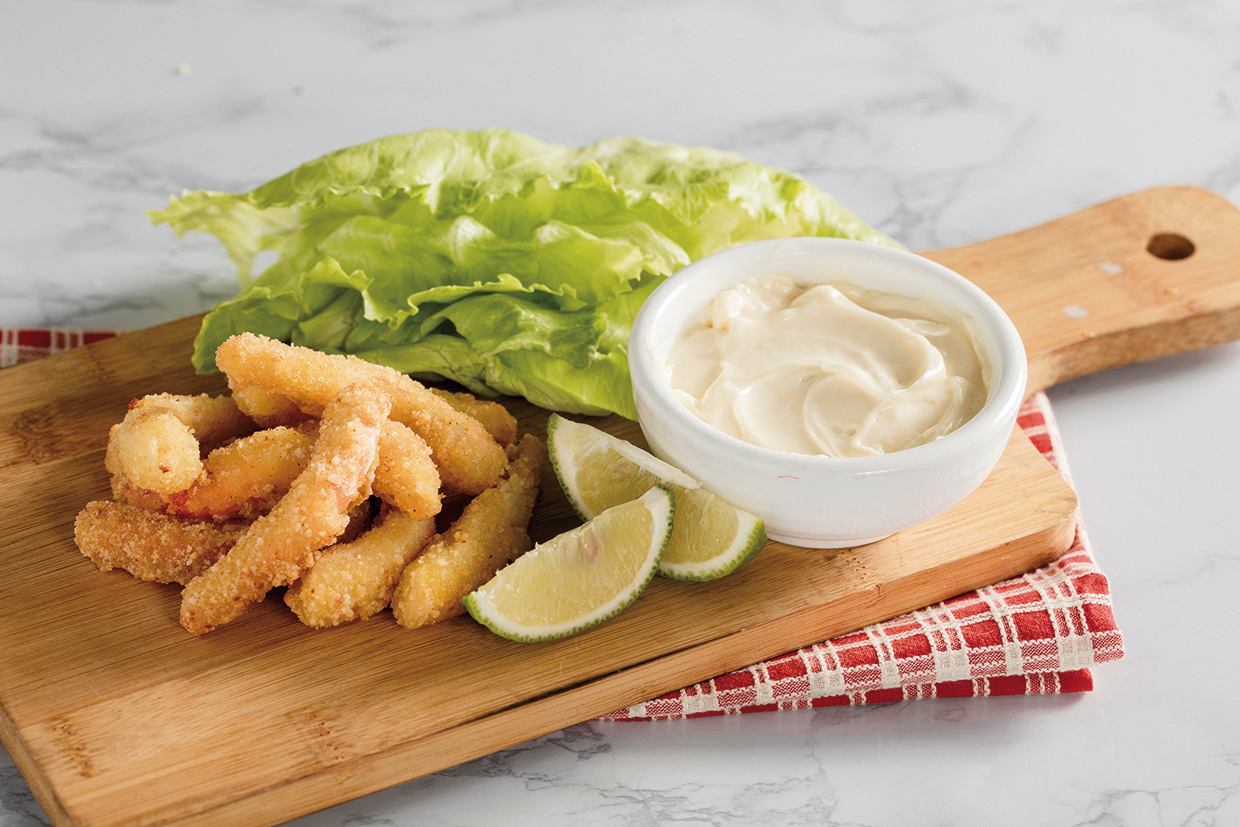 Hung Yang’s overseas orders have grown steadily ever since. It began with OEM products, but has since moved into ODM products. Hsieh pulls out a stack of boxes labeled with images of fried shrimp, fried chicken nuggets, and smoked salmon, all manufactured under a client’s brand and exported to UK supermarkets. “The US and European markets go for frozen, seasoned items, while Southeast-Asian markets prefer unflavored vegetarian foods,” says Hsieh. He adds that markets differ even within Europe, with the Germans preferring one mouthfeel and the British another. With that in mind, Hung Yang has its customers do taste tests on each item before going into production.