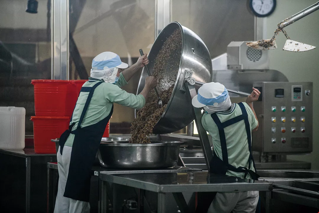Visitors to the factory pass through numerous doors before accessing the interior. “Even a fly would have a tough time getting in here,” jokes Hsieh. The employees inside wear dustproof clothing from head to toe to protect the production process from contamination, and use sodium hypochlorite rather than alcohol to keep the facility disinfected while meeting Halal certification requirements. Hsieh demands attention to detail at every level. Holding up a vegetarian shrimp, he tells us, “The pattern on the surface is painted by hand with carrot juice. It’s very time consuming, but it just doesn’t look right when painted by machine.”