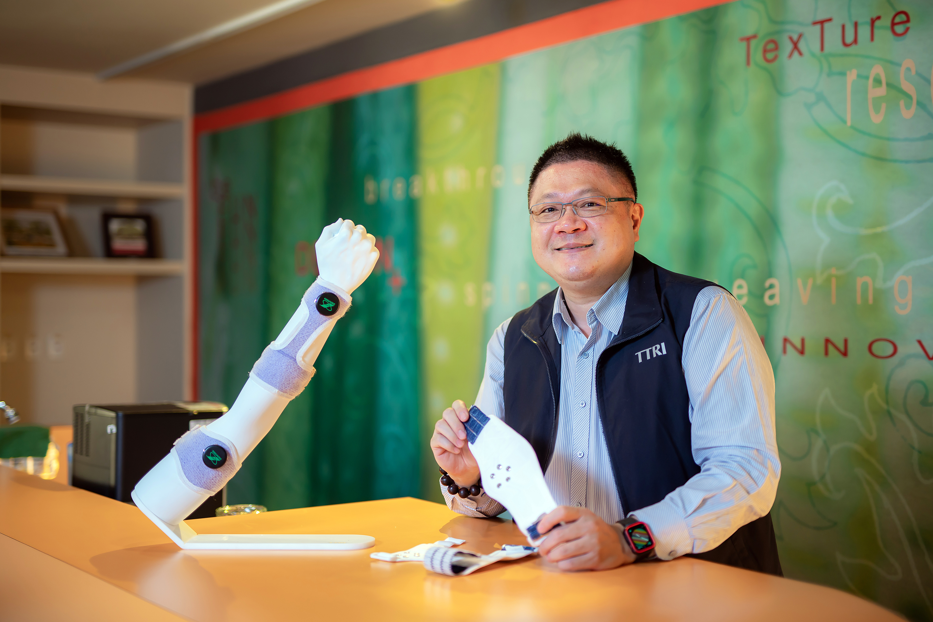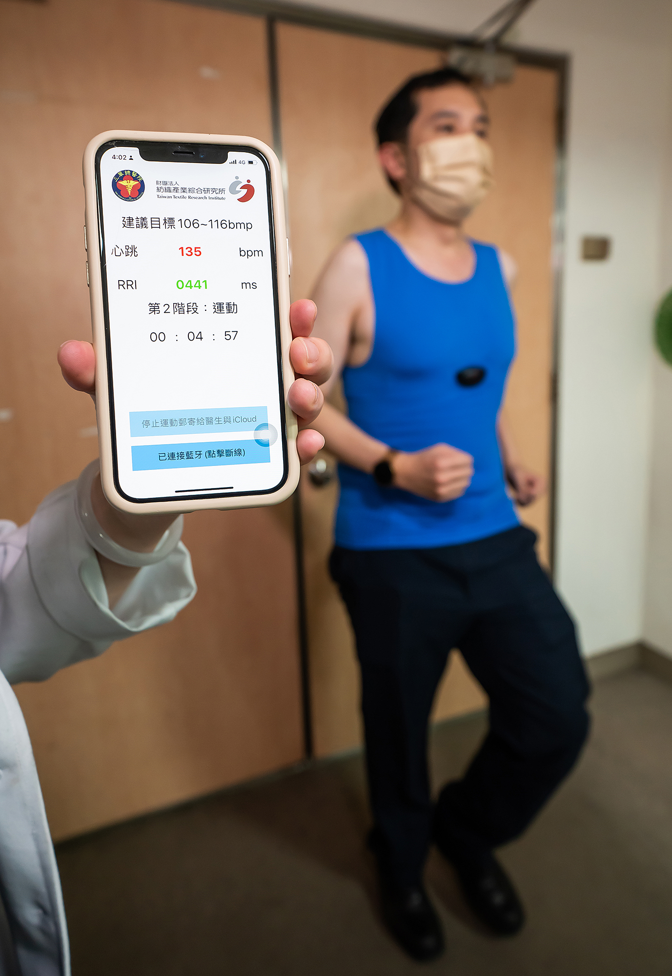 Although Batman’s and Spider-Man’s outfits in the movies may be fancy and eye-catching, in reality smart clothing is not about that kind of flashiness. Chiang Shang-lin, director of the Department of Physical Medicine and Rehabilitation at Tri-Service General Hospital, has been working with the TTRI since 2018 on the use of smart clothing in clinical medicine. Chiang, a bronze National Healthcare Quality Award winner, shows us a wearable heart rate sensor garment for patients. Except for a short, thin transmitter on the chest, it looks virtually indistinguishable from ordinary clothing.