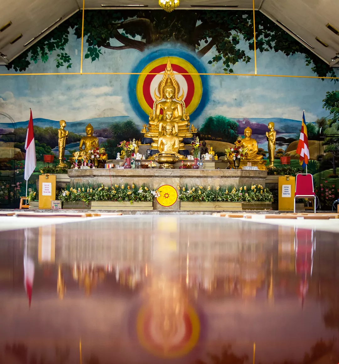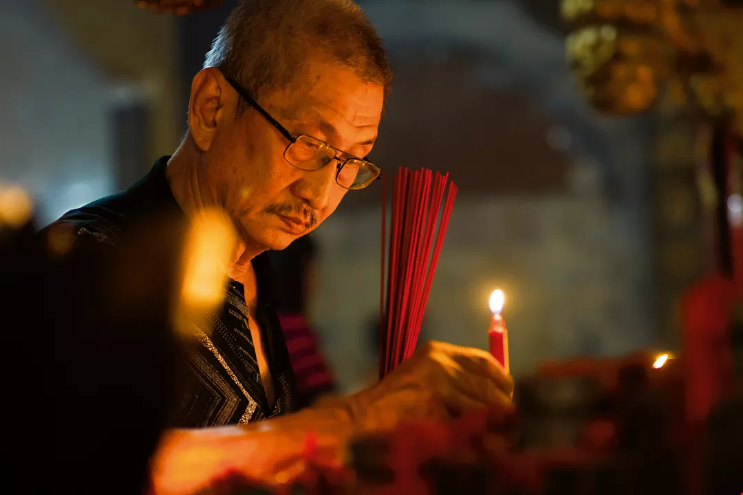 When you enter the side streets of a Chinatown in Indonesia, Fujian-style temples, with their swallowtail roof ridges, meet the eye, while smoke from incense burners curls into the air. Here you can see the Buddhist and Taoist faith of Chinese-Indonesians.
