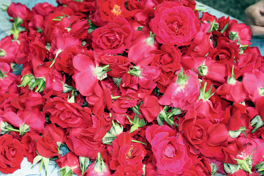Preserving the color and scent of the roses once they’re harvested is also a challenge.