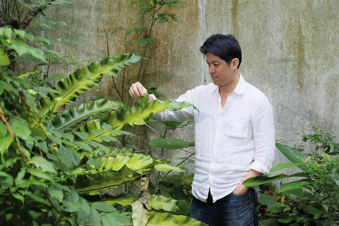In the garden of Not Just Library, Wu has planted nearly a hundred species of flora, with various native ferns, opening up a space for meditation and relaxation. (photo by Kent Chuang)