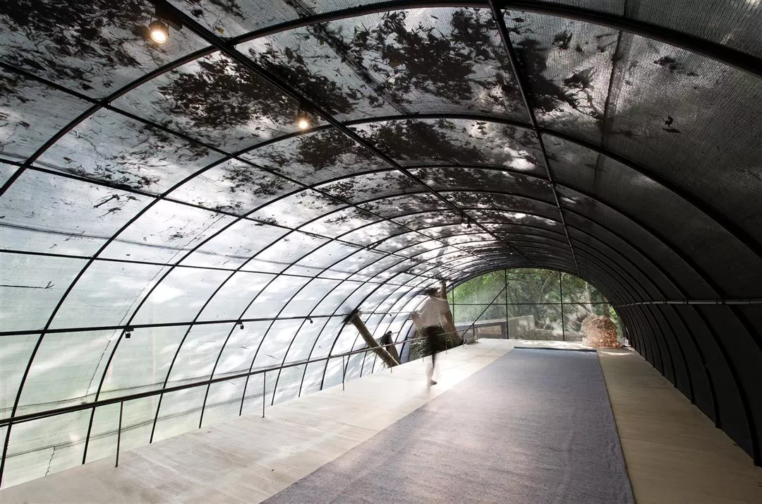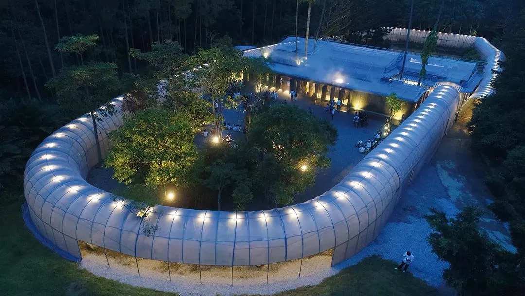 True to his belief in the need for barriers, Zein has created a circular walkway for the Forest BIG at CMP Village in Miaoli County. Covered with silver, translucent agricultural netting, and measuring some 300 meters long, the walkway is thinly isolated from the wild, but it provides a tranquil space where pedestrians may enjoy listening to birds and insects while relishing the subtle modulations of temperature in the air. The walkway derives its ritualistic allure from this tantalizingly fluid boundary between man and nature.